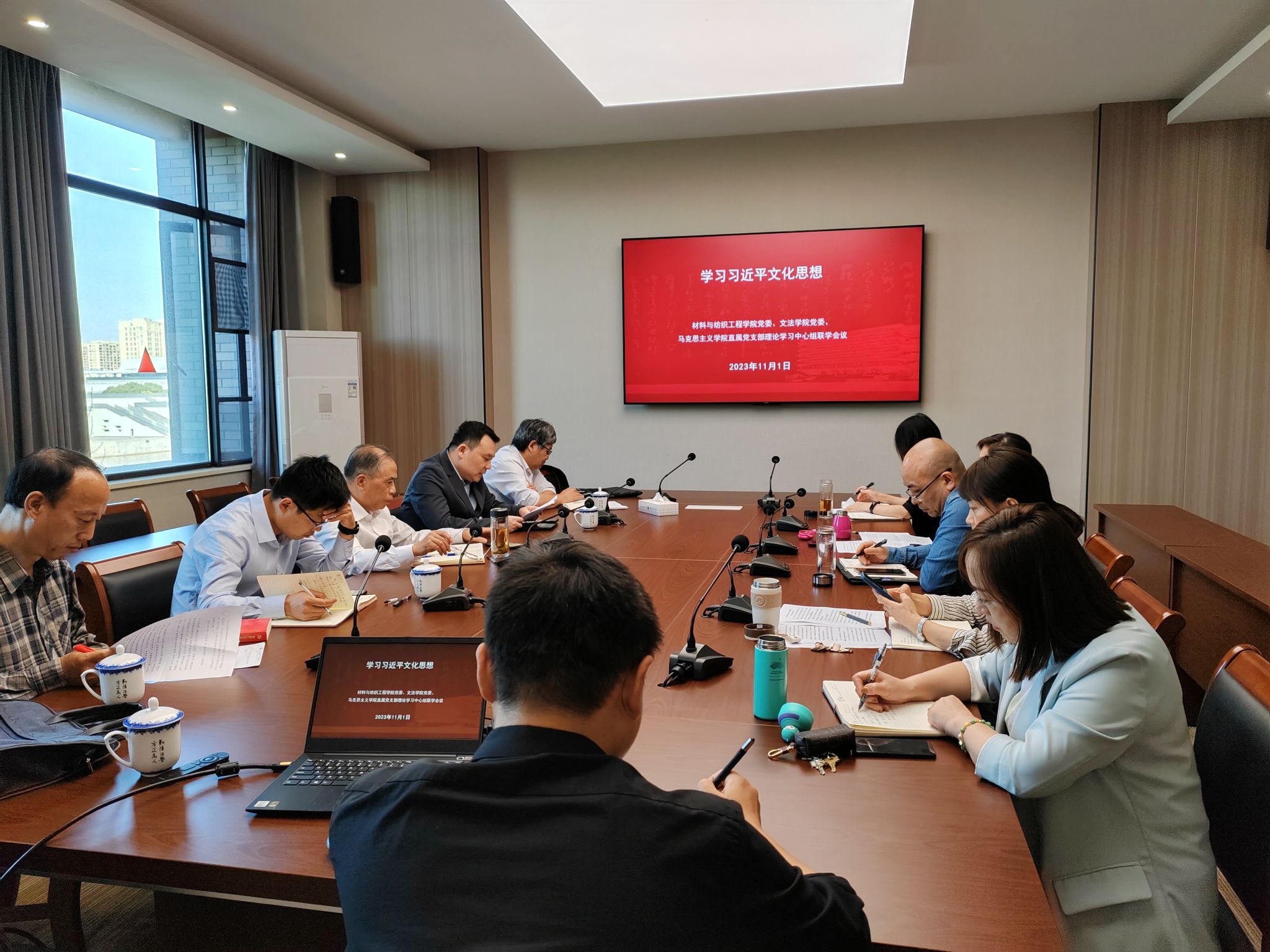 111日下午,文法学院党委、材料与纺织工程学院党委和云顶赌场 直属党支部在厚德楼350会议室召开理论学习中心组联学,专题学习习近平文化思想校党委副书记钱方明出席联学,三个单位中心组成员参加联学。会议由云顶赌场 直属党支部书记宋之霞主持。